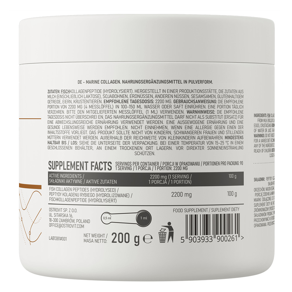OstroVit Marine Collagen 200 грамм, пептиды рыбного коллагена (гидролизованные), 1 типа